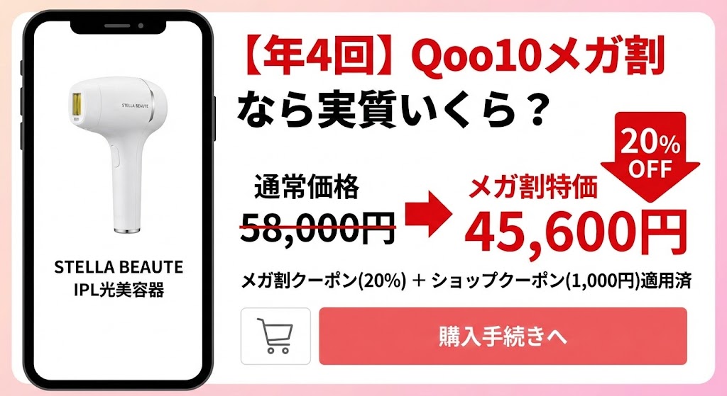 - Qoo10メガ割なら実質20%OFFも可能である