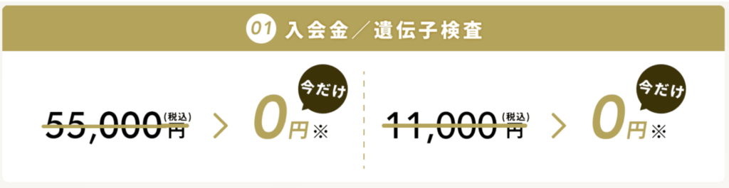第一に、入会金(33,000円~55,000円 )と遺伝子検査料(7,000円~33,000円 )という高額な初期費用を、「当日入会キャンペーン」 などを利用して必ず「無料」にすること。