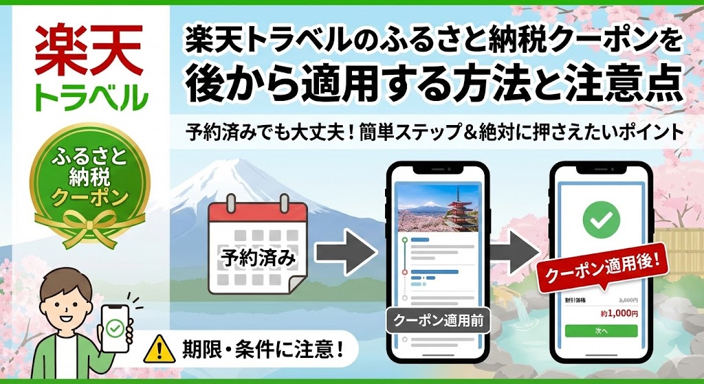 楽天トラベルで予約済みの旅行に、後からふるさと納税クーポンを適用できるのは非常に便利な機能ですが、全てのケースで可能なわけではありません。