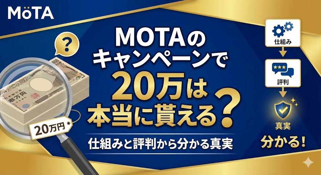 MOTAのキャンペーンで20万は本当に貰える?仕組みと評判から分かる真実