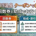 この記事では、いちばん効く回数券の買い方を中心に、JAFなどの優待の確認ポイントや、系列店のぬくい温泉チケット(クーポン)という逃げ道まで、損しない選び方をまとめます。